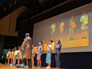 Mr.マリックさんには交通安全パワー✋をいただきました。壇上に登った子供達と杉浦さんに協力してもらい、ごちゃ混ぜにしたはずの封筒から「初心を忘れず交通安全」と、見事に文字が出てきました😲